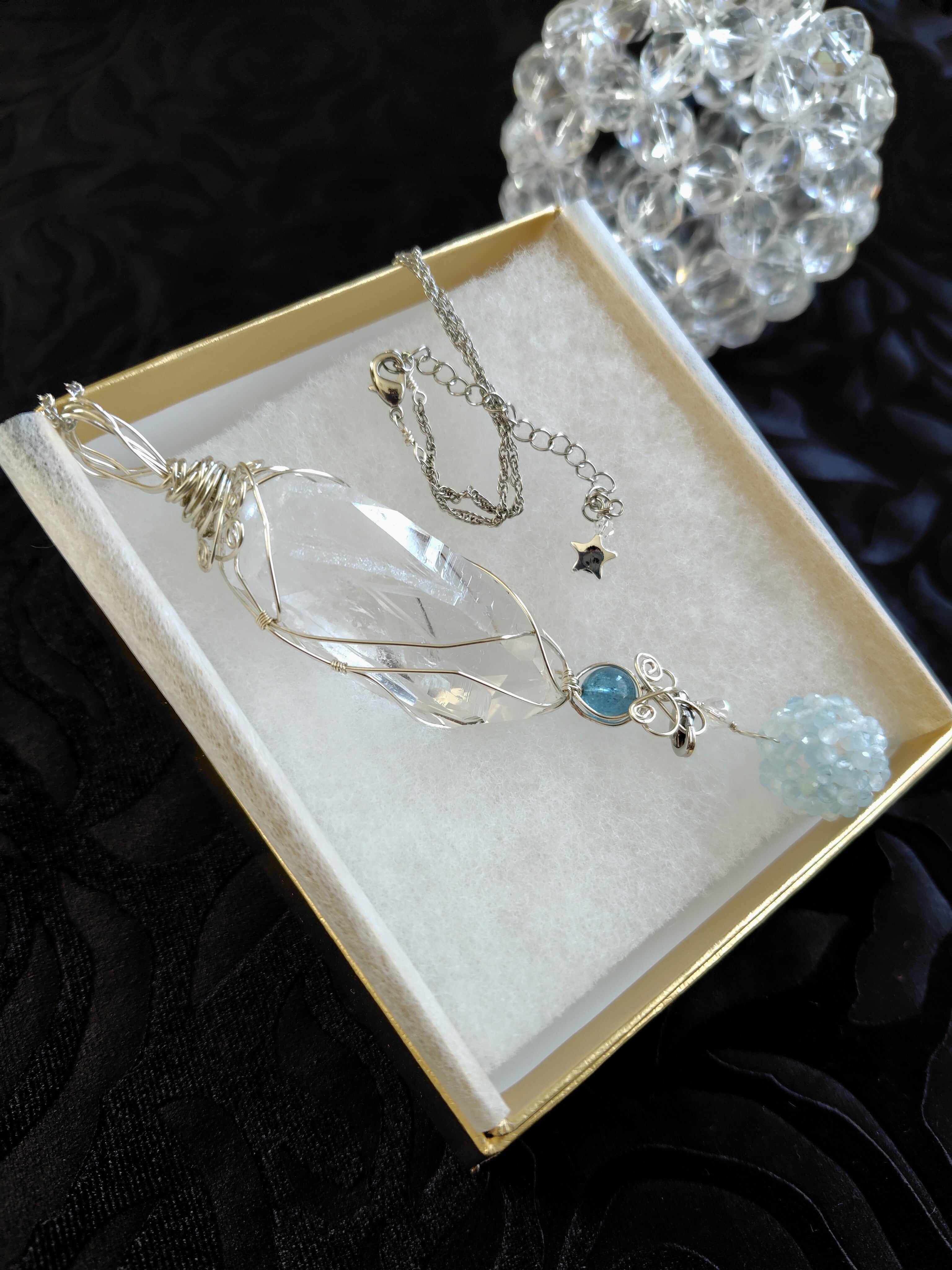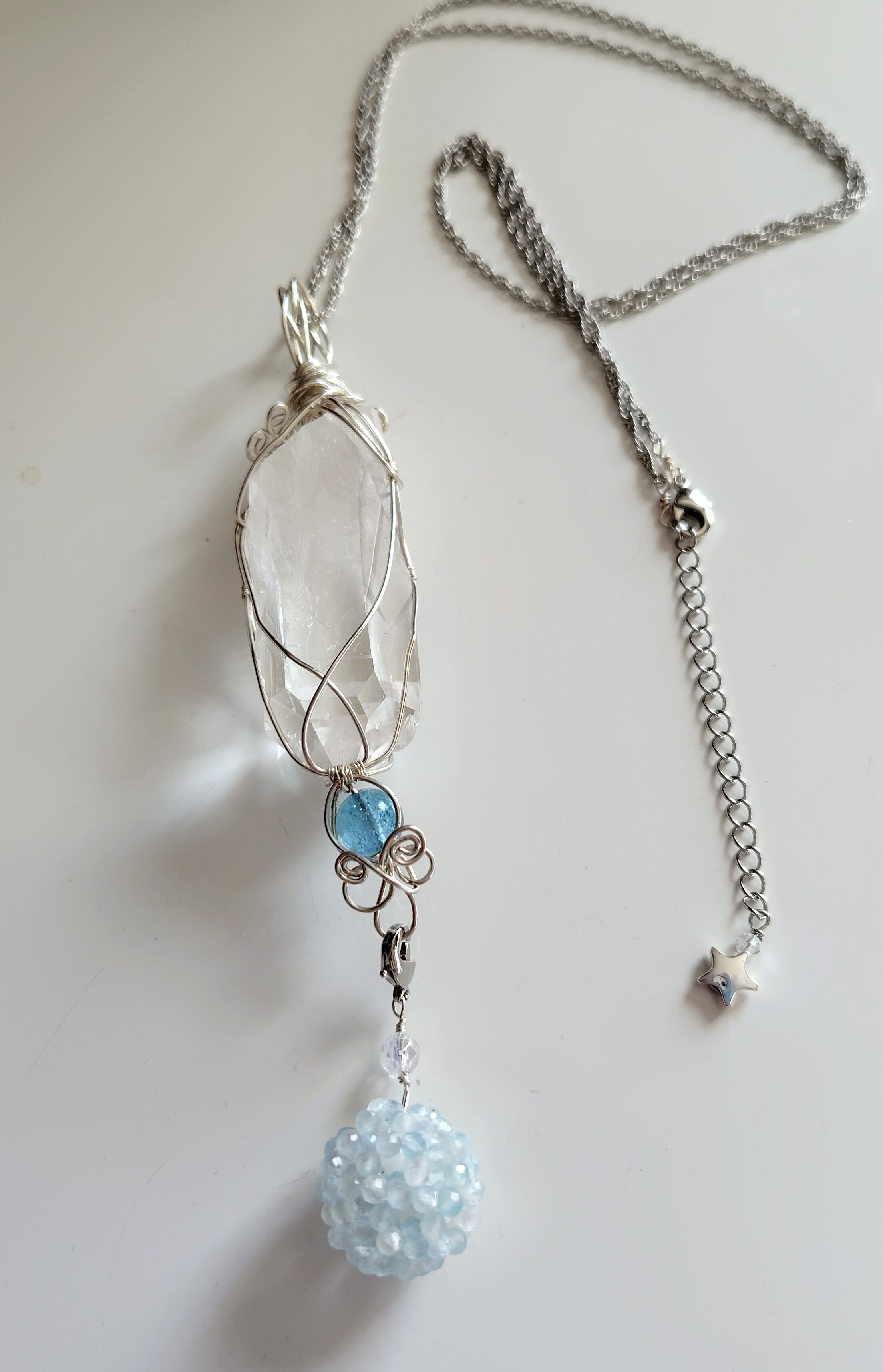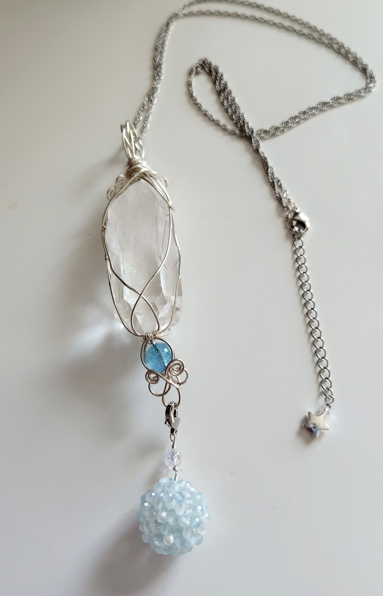 トマスゴンザガ産水晶をワイヤーラッピングで包んだペンダントトップです