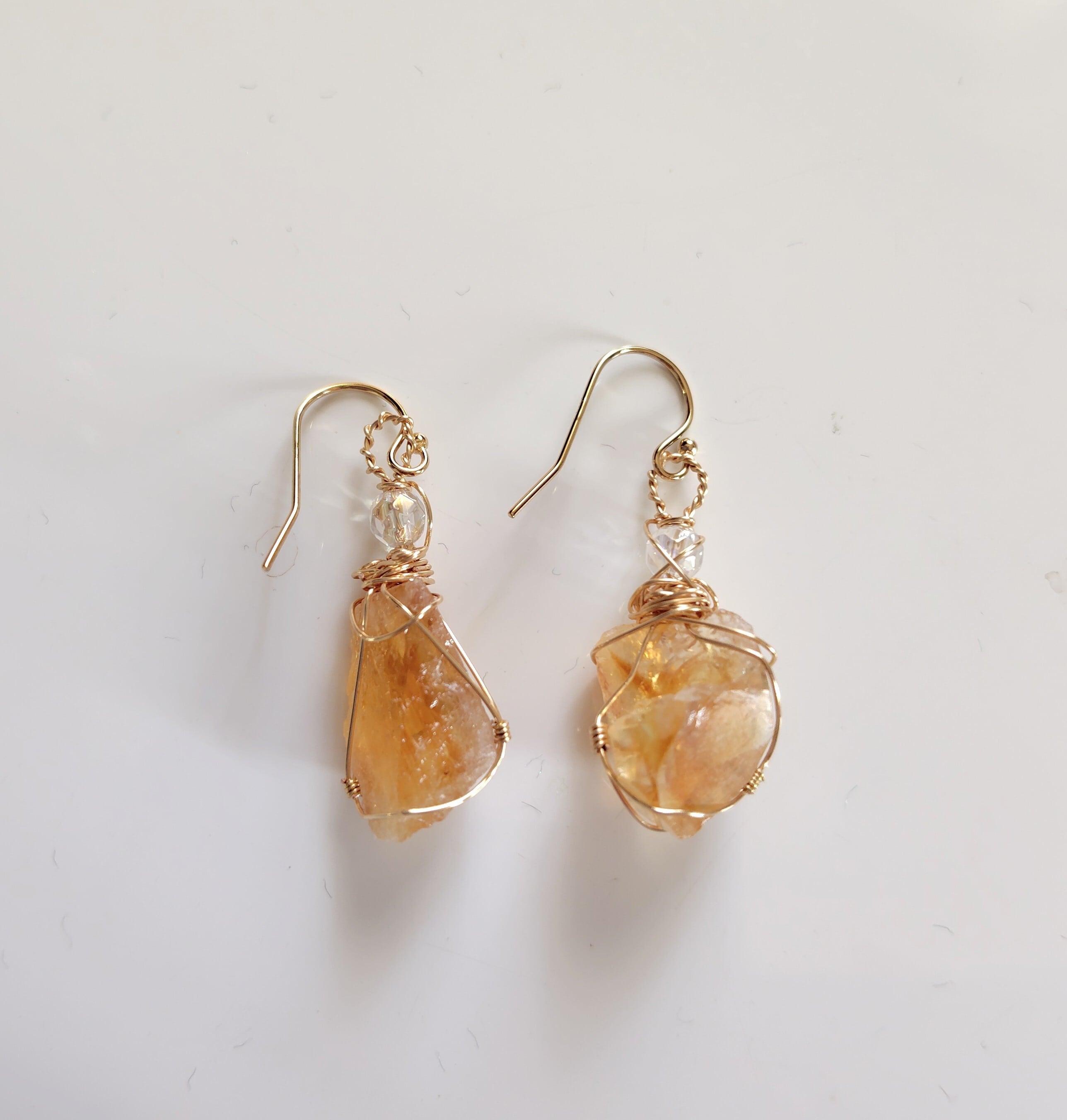 ♡それぞれのピアスには、手作業で丁寧にラッピングされたヒマラヤシトリンを使用。美しいゴールドカラーが耳元を華やかに彩ります。