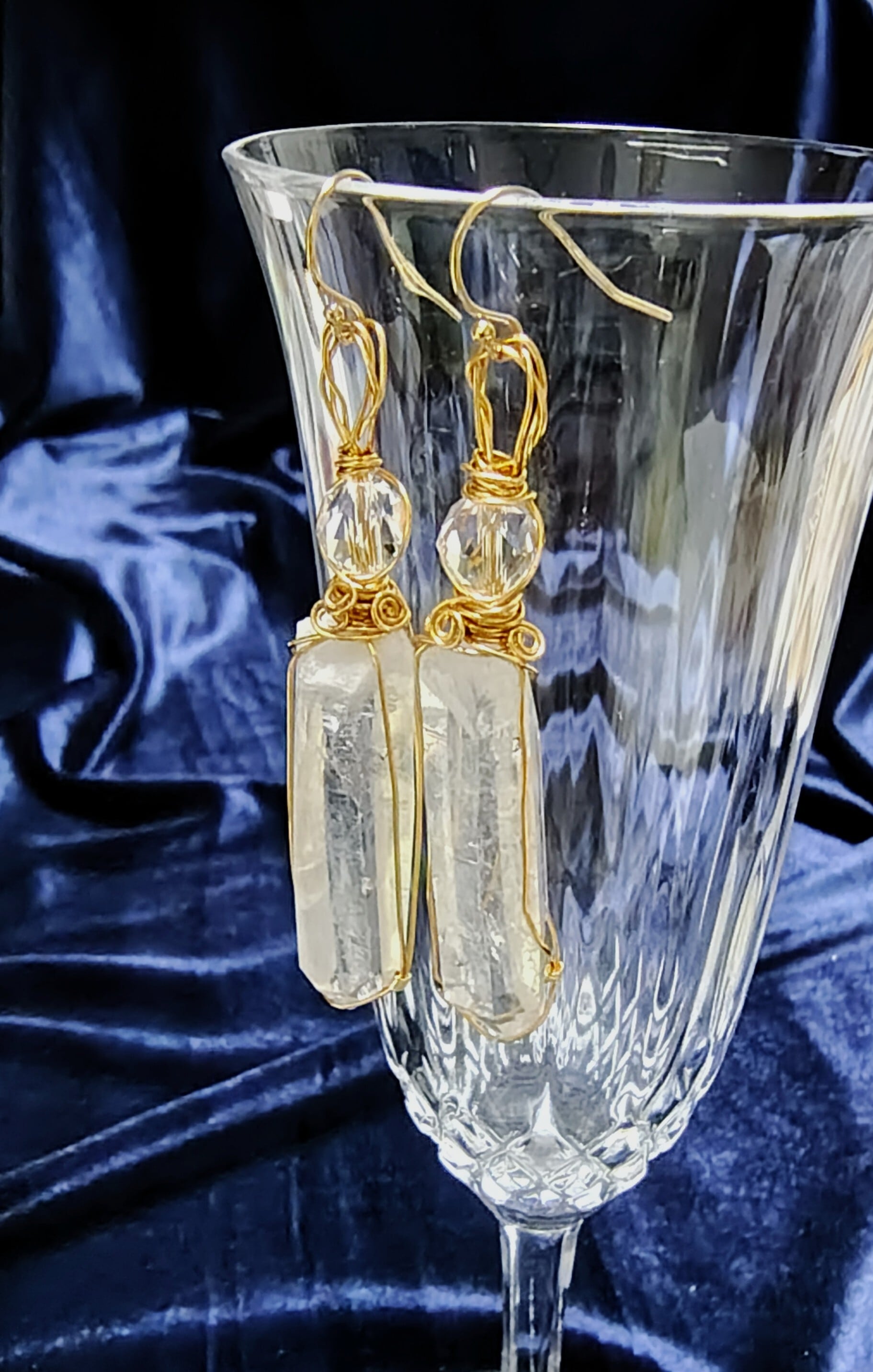 ♡トマスゴンザガ産のスターシード水晶を使って、丁寧にワイヤーラッピングされたピアスです。宇宙のエネルギーを宿した透明感が美しい水晶の輝きが、あなたの耳元を華やかに彩り、個性を引き立てるアイテムとなっています。